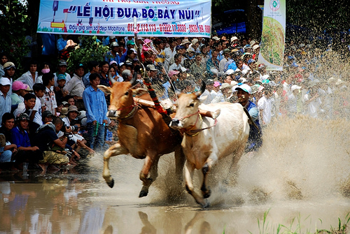 Hội đua bò Bảy Núi là lễ hội truyền thống của đồng bào Khmer ở An Giang, diễn ra vào dịp lễ Ok Om Bok. Người dân thi tài điều khiển bò trên đường đua dài, thể hiện sức mạnh, sự khéo léo và tinh thần đoàn kết. Lễ hội vừa mang tính giải trí sôi động, vừa là dịp tạ ơn thần linh sau mùa vụ bội thu.